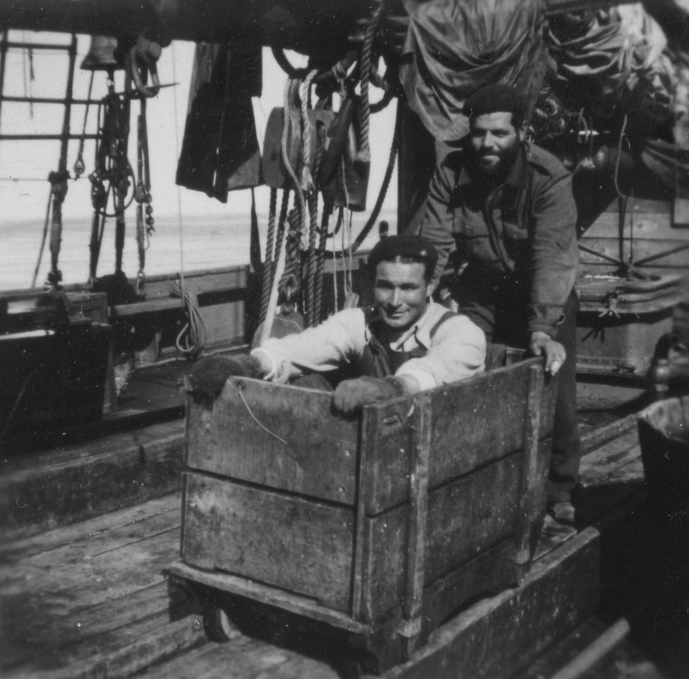 no carro do bacalhau, no convés do Argus